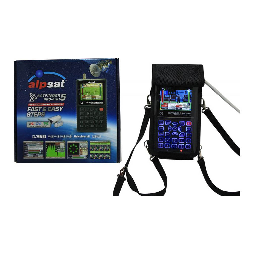 SATFINDER 5 PRO AHD 3.5” LCD Tft ekrana ve 800MHz işlemciye sahip NIT fonksiyonlu profesyonel Spektrum Analiz yapabilen HD TV görüntü gösterebilen , ışıklı tuş takımı ile hızlı ve kolay kurulum yapabileceğiniz DVB-S/S2 Uydu Ölçüm test ölçüm cihazıdır. SATFINDER 5 PRO-AHD çanak anten kurulumlarının en doğru şekilde yapılması için profesyonel bir ölçü aletidir. Cihaz 3.5″ Lcd Tft renkli monitörü ile SD ve HD Digital TV programlarını ayrıca 950-2150mhz arasındaki frekans spektrumu (normal ve gelişmiş modda) görüntüleyebilirsiniz.